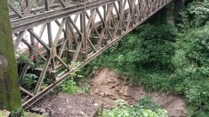 मिनरल स्प्रीङ, 7 अगस्त (अनिल जिम्बा ): मिनरल स्प्रीङको सम्पूर्ण क्षेत्रलाई लेबोङ दार्जीलिङ शहर लगायत अन्य स्थानसित सडक मार्गले जोड्ने पान्दाम चियाबारी अनि आङ्खु माझमा अवस्थित रुङदुङ खोलामाथि बनाएको फलामको बेली ब्रिज जसलाई रुङदुङ मुक्ति पुल भनिन्छ उक्त पुलको याङ्खुपट्टिको आधार जग अथवा फाउण्डेशनको ठूलो अंश धस्केर गएको हुनाले स्थानीय मानिसहरू चिन्तित बनेका छन्।पुल जडान गरिएको ठीक मुनिल्लतिर फाउण्डेशन-को ठूलो अंश झरेर खोलामा पसेको हुनाले रुङदुङ खोलाको आधा भाग नै उक्त झरेको हिस्साले ढाकेको छ भने खोला बढेर आएको बेला पानीले आफ्नो दिशा बदलिए सोझै पुल मुनिको अंशलाई ठूलो क्षति पुर्याउने सम्भावना बढेर गएको छ।। यसरी पुल मुनिको अंशलाई क्षति पुगेको खण्डमा उक्त मुक्ति पुल धरासयी हुन सक्छ जसले गर्दा यो पुल भएर ओहोर-दोहोर गर्ने सम्पूर्ण जनसाधारण तथा यात्रुहरु प्रभाव पर्न जान्छ यसर्थ यस विषयलाई सम्बन्धित निकायले समयमा नै निरीक्षण गरी उचित पहल गरीदिए राम्रो हुनेछ भनी गाउँवासीको पक्षमा मिनरल स्प्रीङ यांखु निवासी मणिराज राईले सन्चार माध्यमलाई जनाएका छन्। विगत दागोपाप-को समयमा विभागिय रुपमा नै पुलको निरीक्षण रंग पचेरा आदिको कार्य हुन्थ्यो तर अहिले यस्तो केही भएको जस्तो लाग्दैन। विभागले पनि यसको देखरेख गरिदिए अति उत्तम हुनेथियो उनी भन्छन्। पुललाई जडान गरिएको एकापट्टिको नट बोल्ट पनि निकालिएको तथा हराएको देखिएको छ यसले पुल तथा वाहनहरुको भार वहन गर्ने क्षमतालाई प्रभाव पार्ने हुनाले यो विषय अति निन्दनीय तथा चिन्तित तुल्याउने भएको हूनाले सम्बन्धित विभागले यसप्रति चाँडै पहल गरीदिनु पर्छ भनी उनले भनेका छन्। ज्ञात रहोस रुङदुङ खोलामाथिको यो बेली ब्रिजको निर्माण पश्चात 1 अक्टोबर 1995 सालमा दार्जीलिङ गोर्खा पार्वत्य परिषद्का अध्यक्ष स्वर्गीय सुवास घिसिङले गरेका थिए भने त्यसपछि नै मिनरल स्प्रीङ क्षेत्र सडक मार्गले अन्य स्थानसित जोडिन पुगेको थियो।